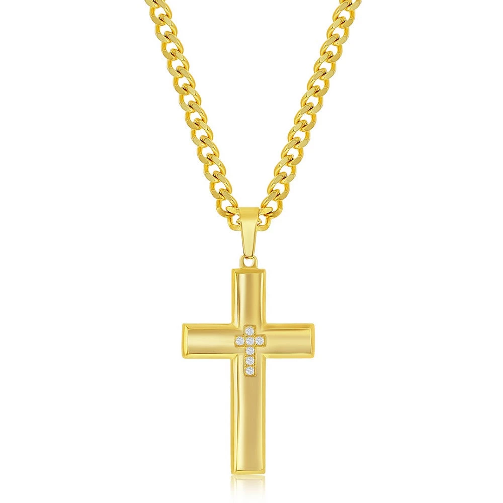 Budget ✔️ Blackjack men Stainless Steel & CZ Cross Necklace – Gold Plated ❤️