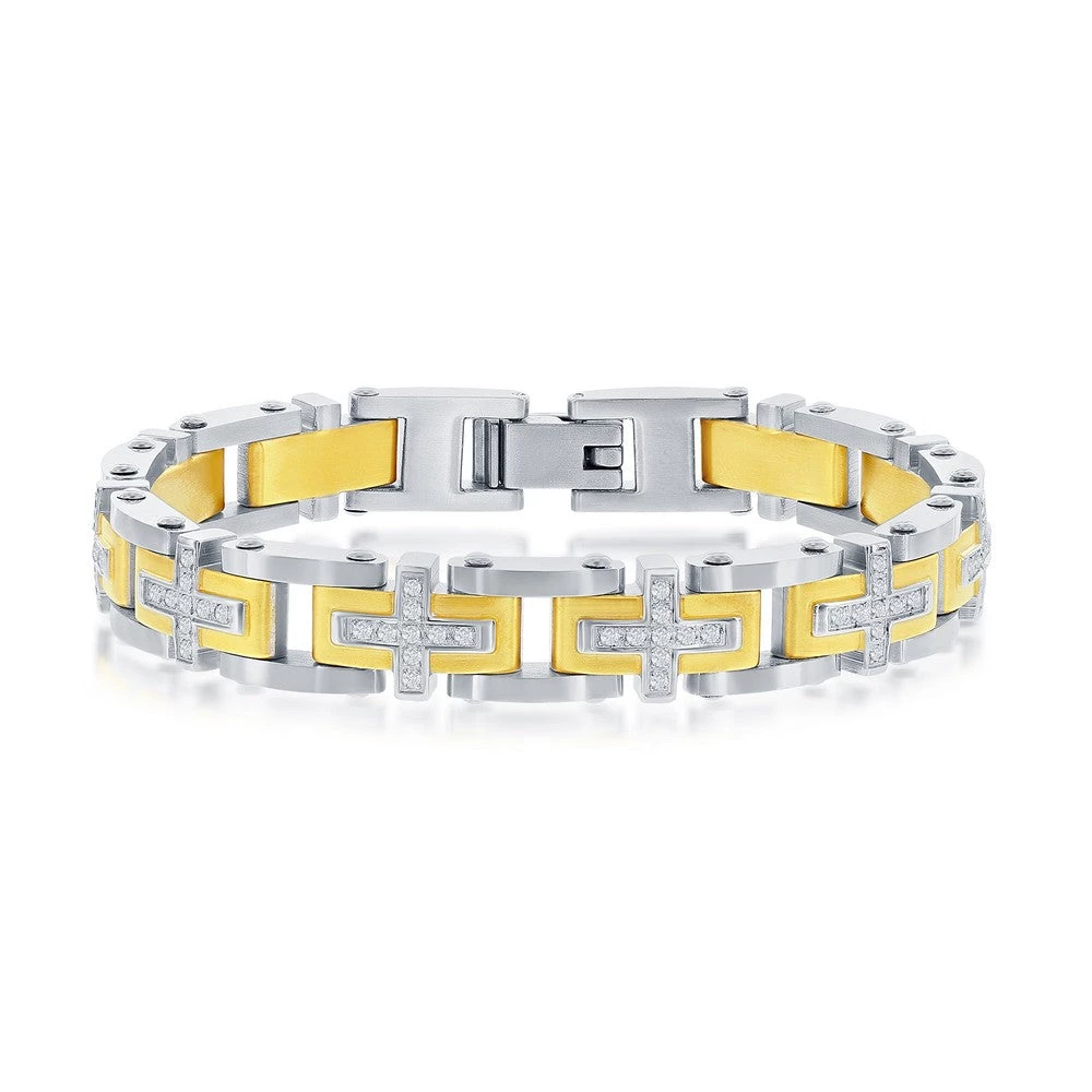 Buy 🎁 Blackjack men Stainless Steel Gold & Silver CZ Cross Link Bracelet ✔️