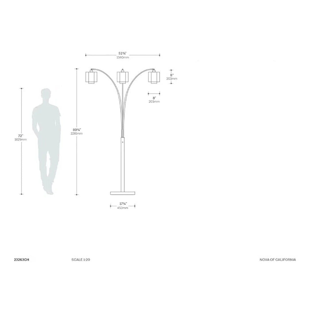 Buy 🧨 Nova of California Marilyn 90″ 3 Light Arc Lamp in Polished Chrome and Mylar/Crystal Shades with Rotary Switch ⭐