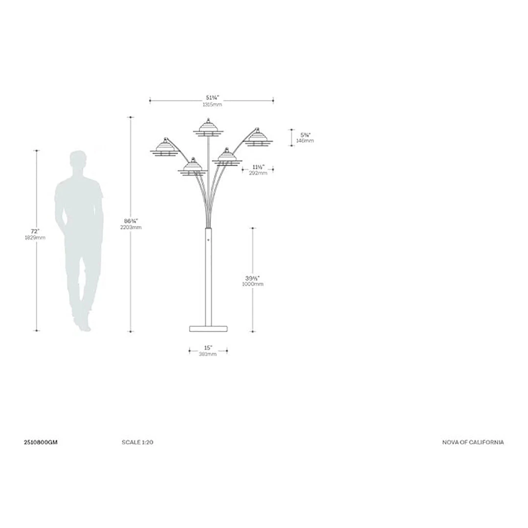 Pulled from the Nova archives, the Paramount 5Lt Arc Lamp is a classic mid-century design updated with LED technology. Crafted with five lamp shades in stacked acrylic rings, this stylish lamp updates a room with its modern aesthetic and streamlined column base. The ombre effect of the three grey scale rings blends beautifully with the timeless gunmetal finish. Crafted from marble, the sturdy base ensures that this lamp will stay where positioned. Paramount 5Lt is dimmable to any light output by utilizing the switch on the column. When used in conjunction with a smart switch, Paramount is compatible with Amazon Echo, Google Assistant, and Apple Home, and can be automatically turned on/off manually, by voice activation, or by scheduled settings.